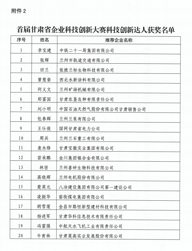 獲獎通知源文件請點擊附件查看首屆甘肅省企業(yè)科技創(chuàng)新大賽獲獎通知(2023.8.21).pdf